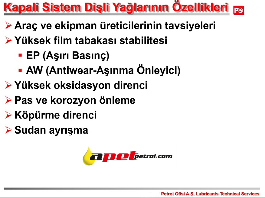 9. Petrol Ofisi Kapalı Dişli Yağı Serileri (Apet Petrol)